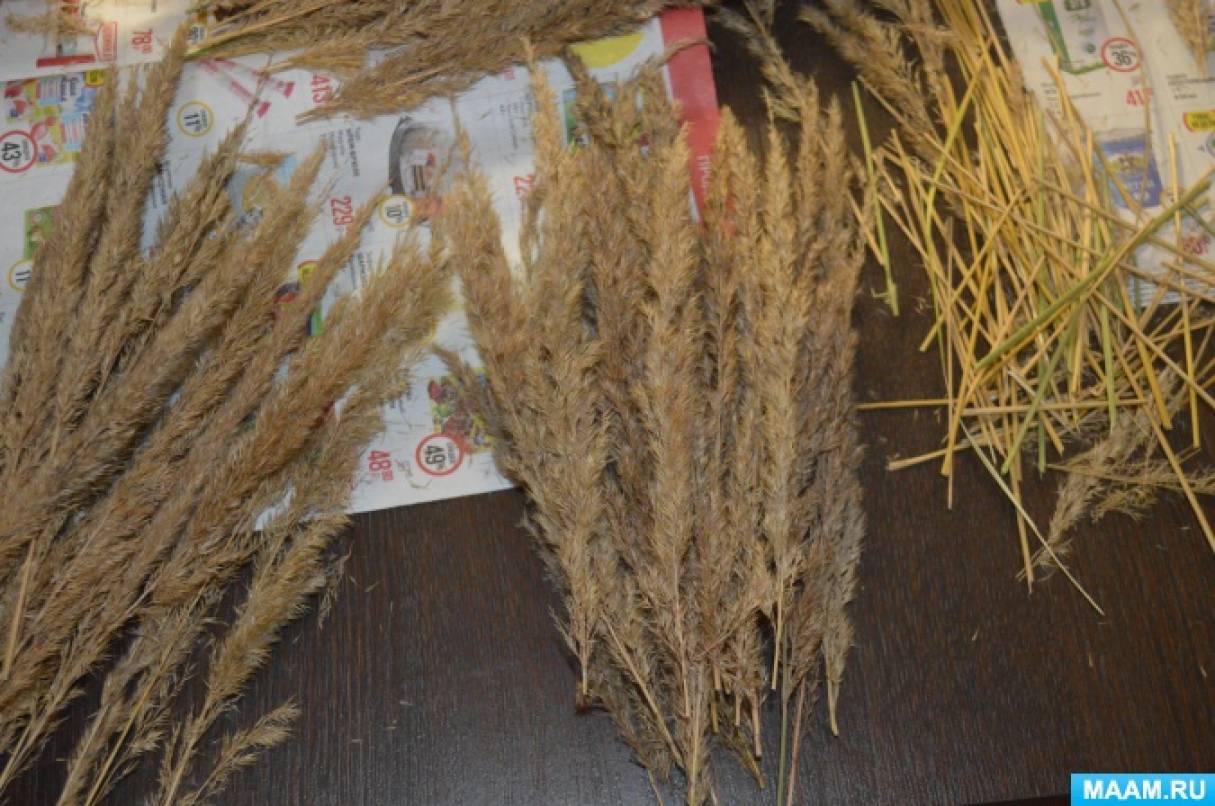 Готовим вейник – обламываем лишний стебель, раскладываем в кучки одинаковой длины